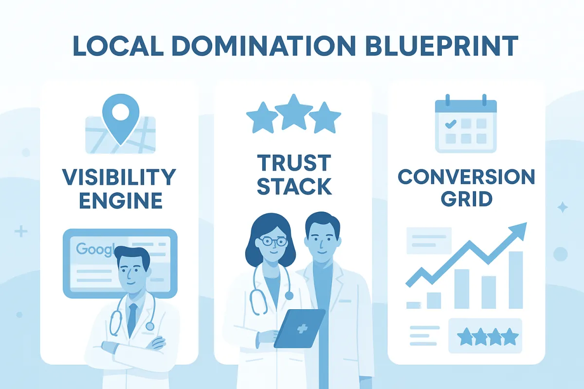 The Local Domination Blueprint is a breakthrough system designed to help medical practices consistently attract high-quality patients. It eliminates the need to waste money on underperforming ads, work with multiple disconnected agencies, or rely on outdated SEO tactics that no longer deliver.